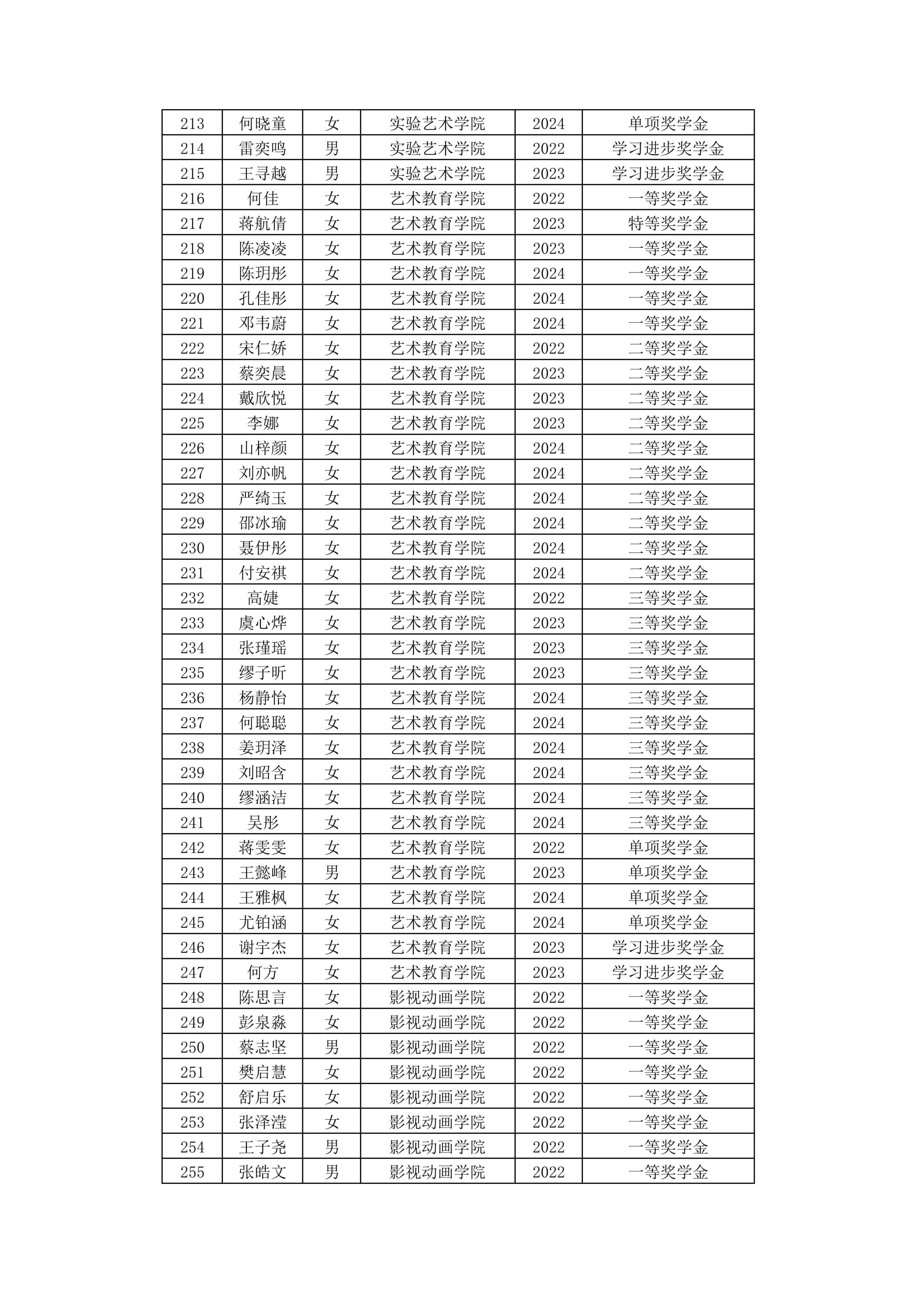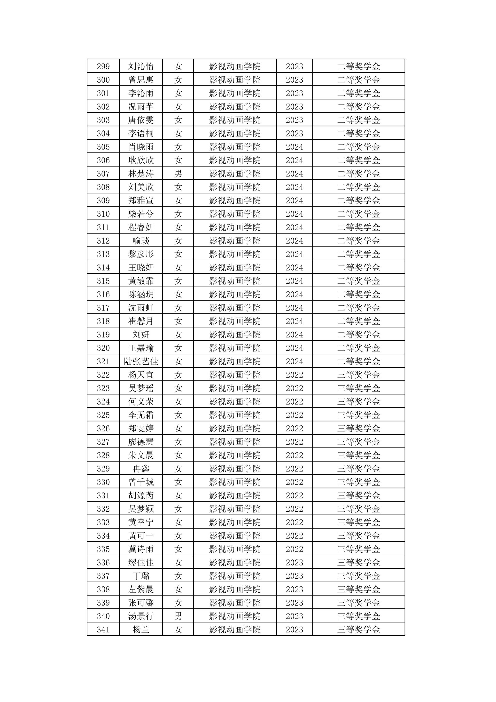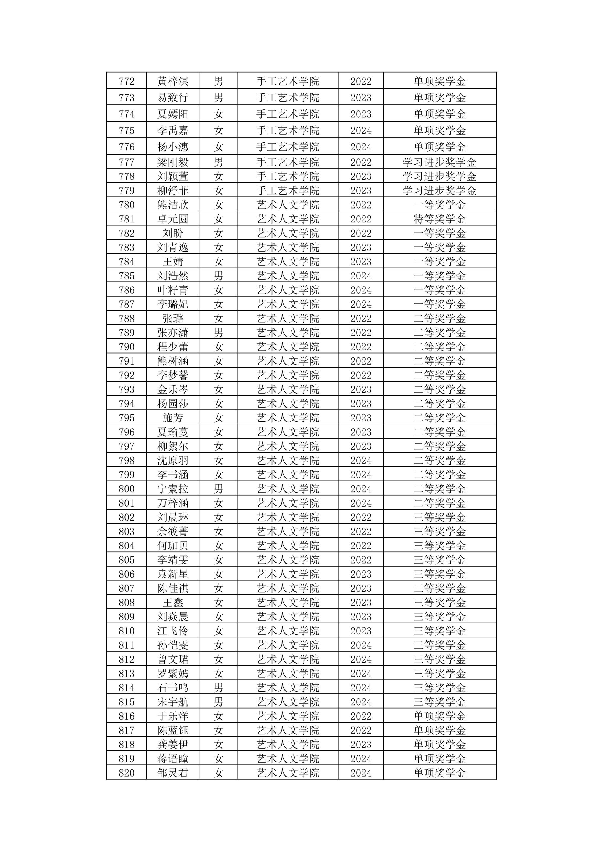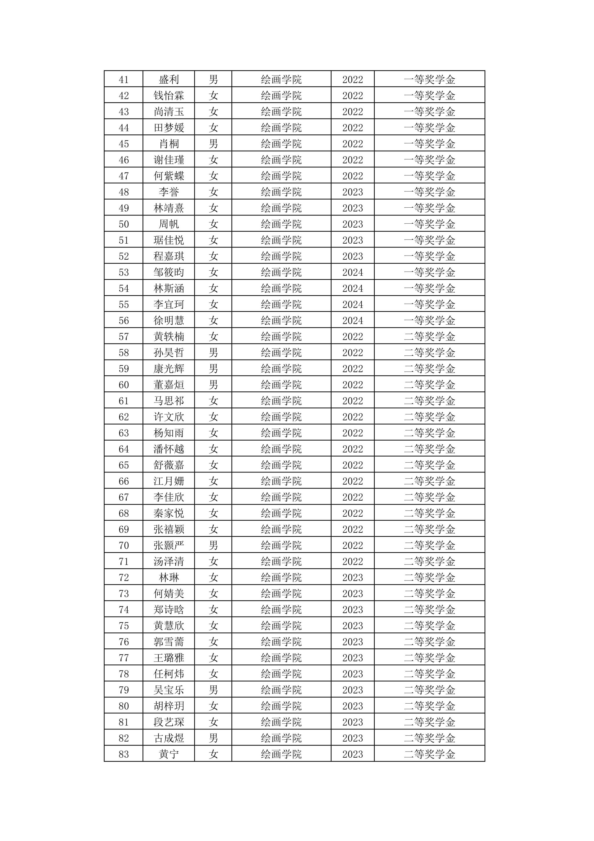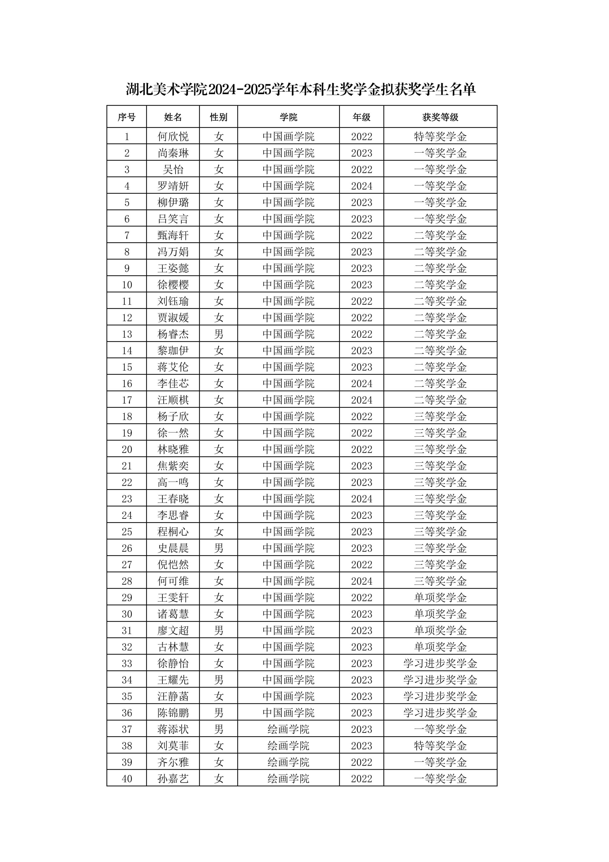 附件:湖北美术学院2024-2025学年本科生奖学金拟获奖学生名单