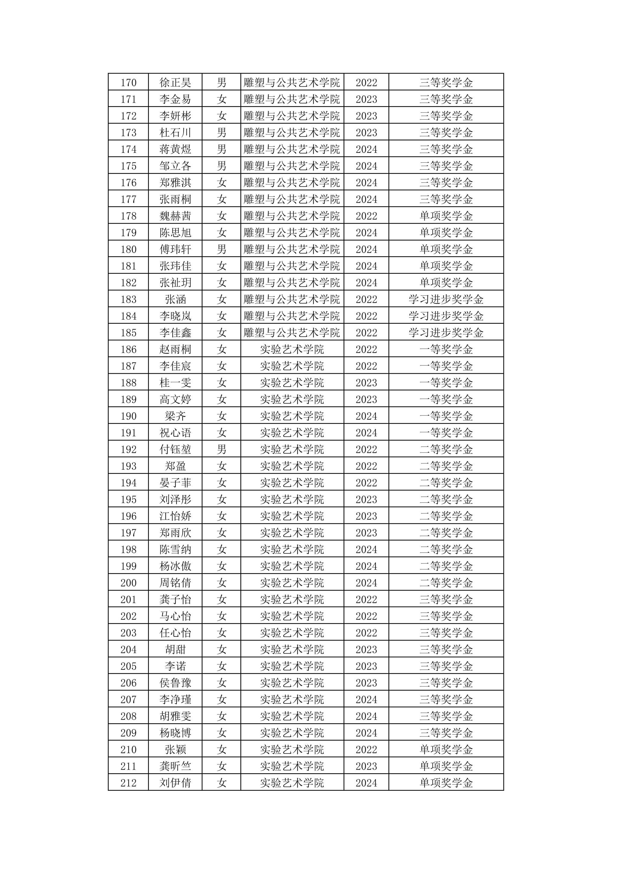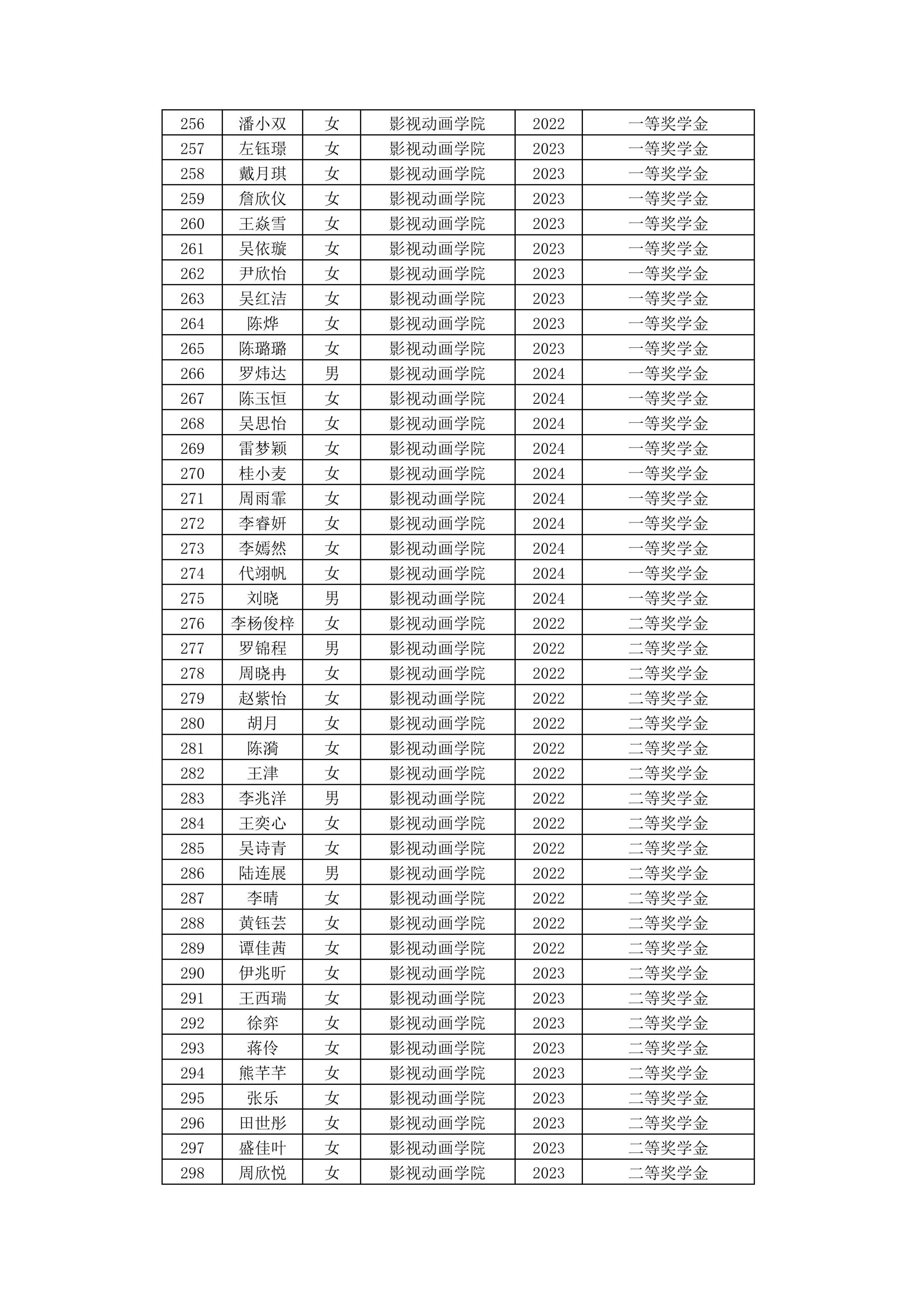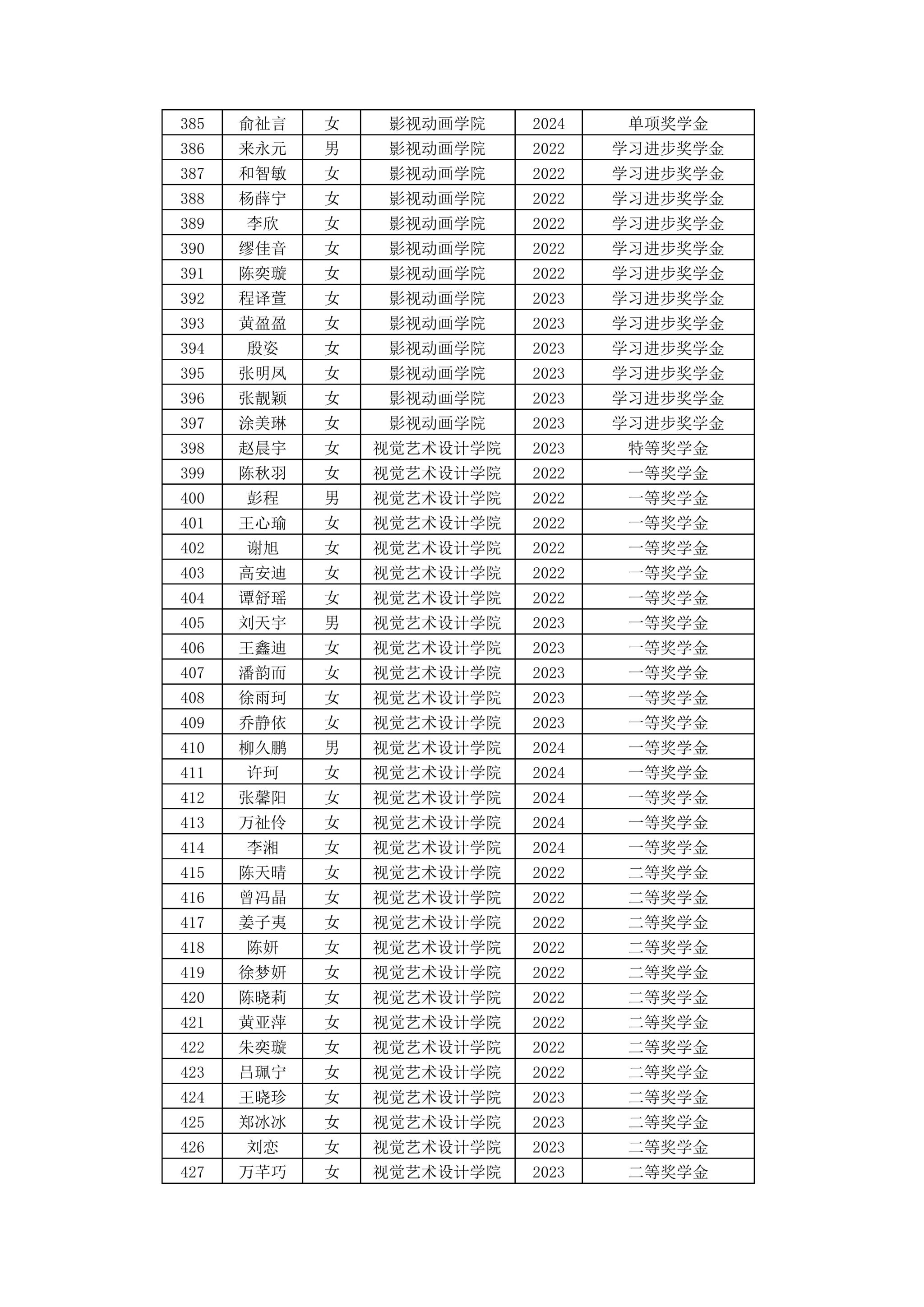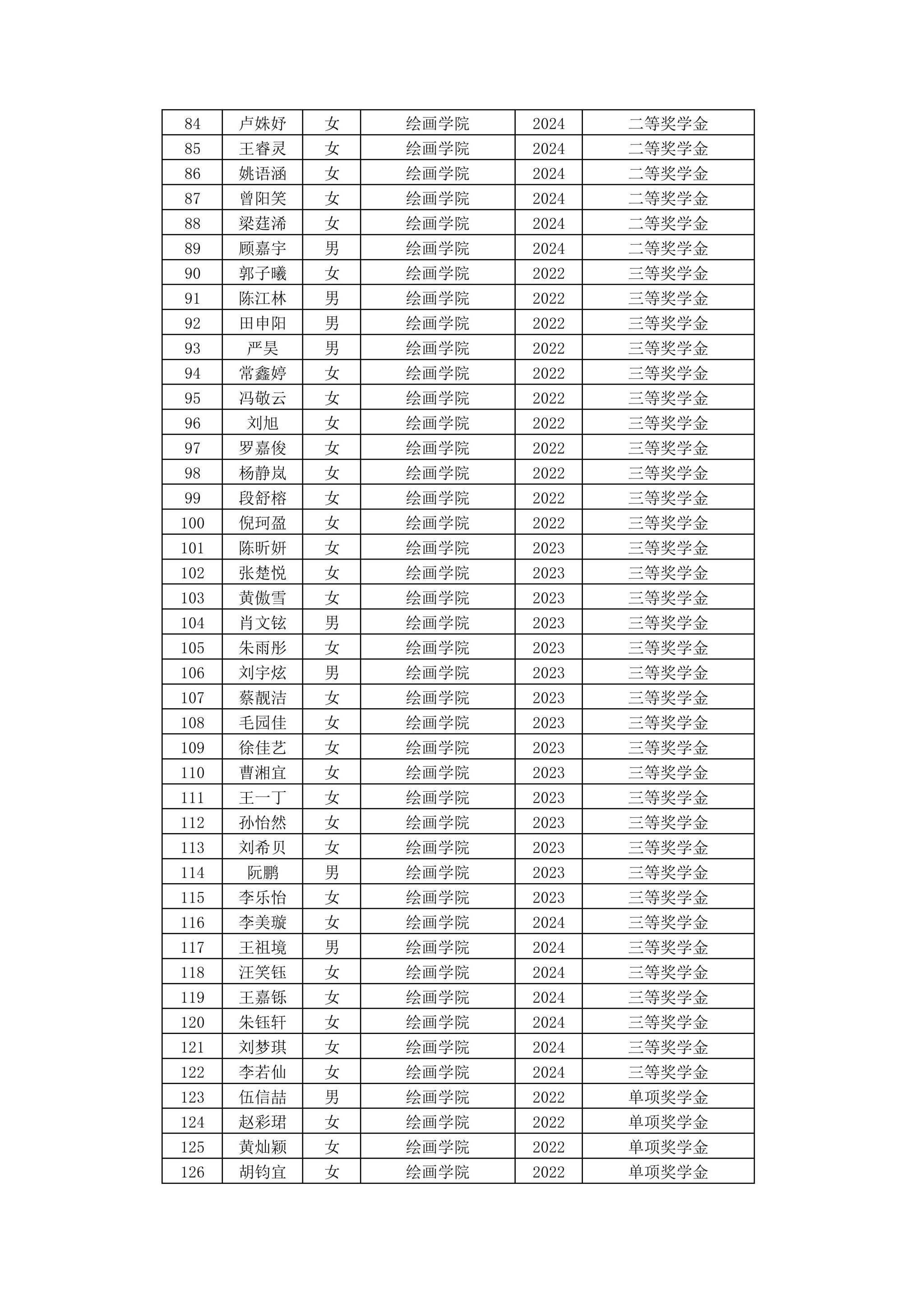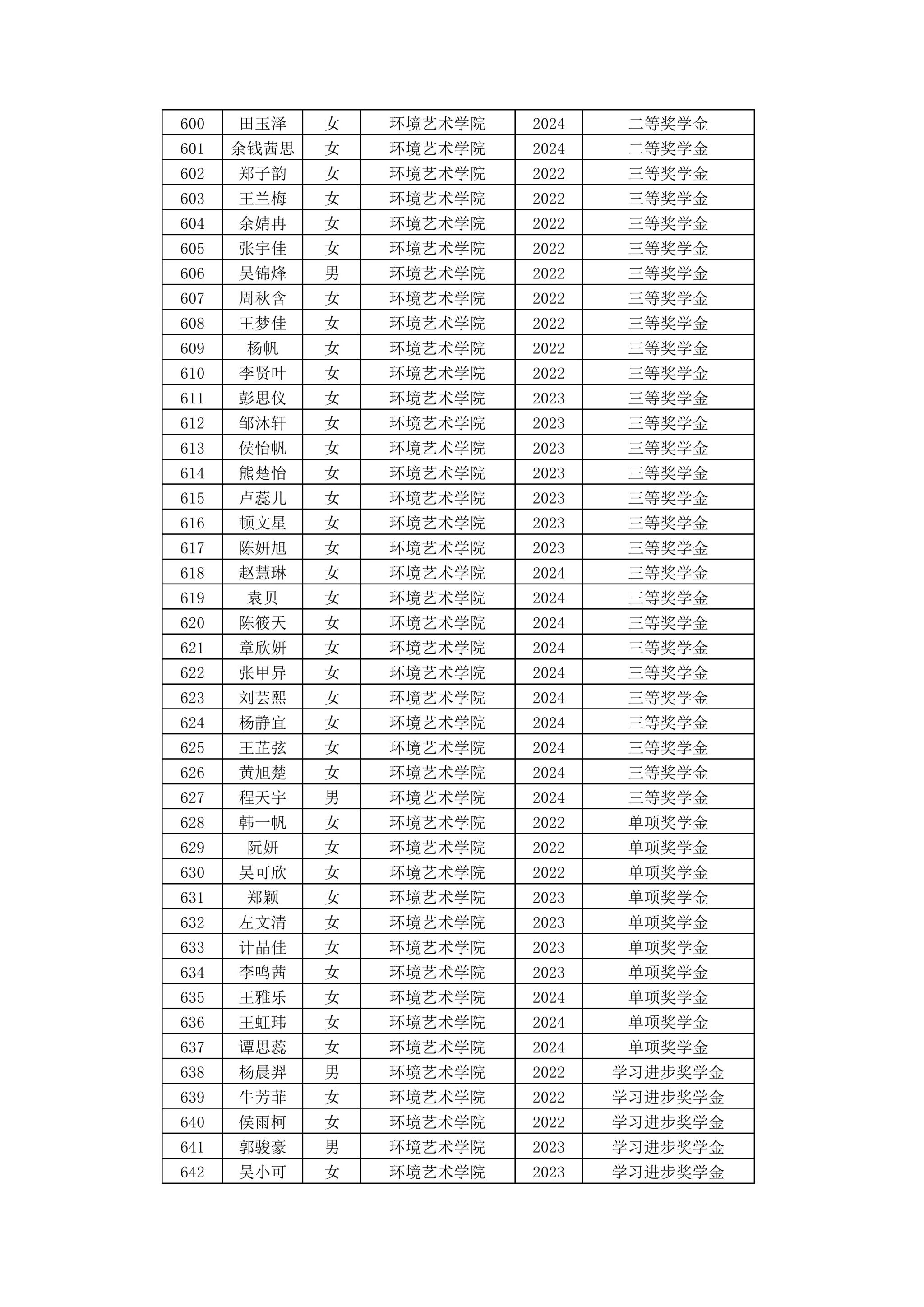 附件:湖北美术学院2024-2025学年本科生奖学金拟获奖学生名单