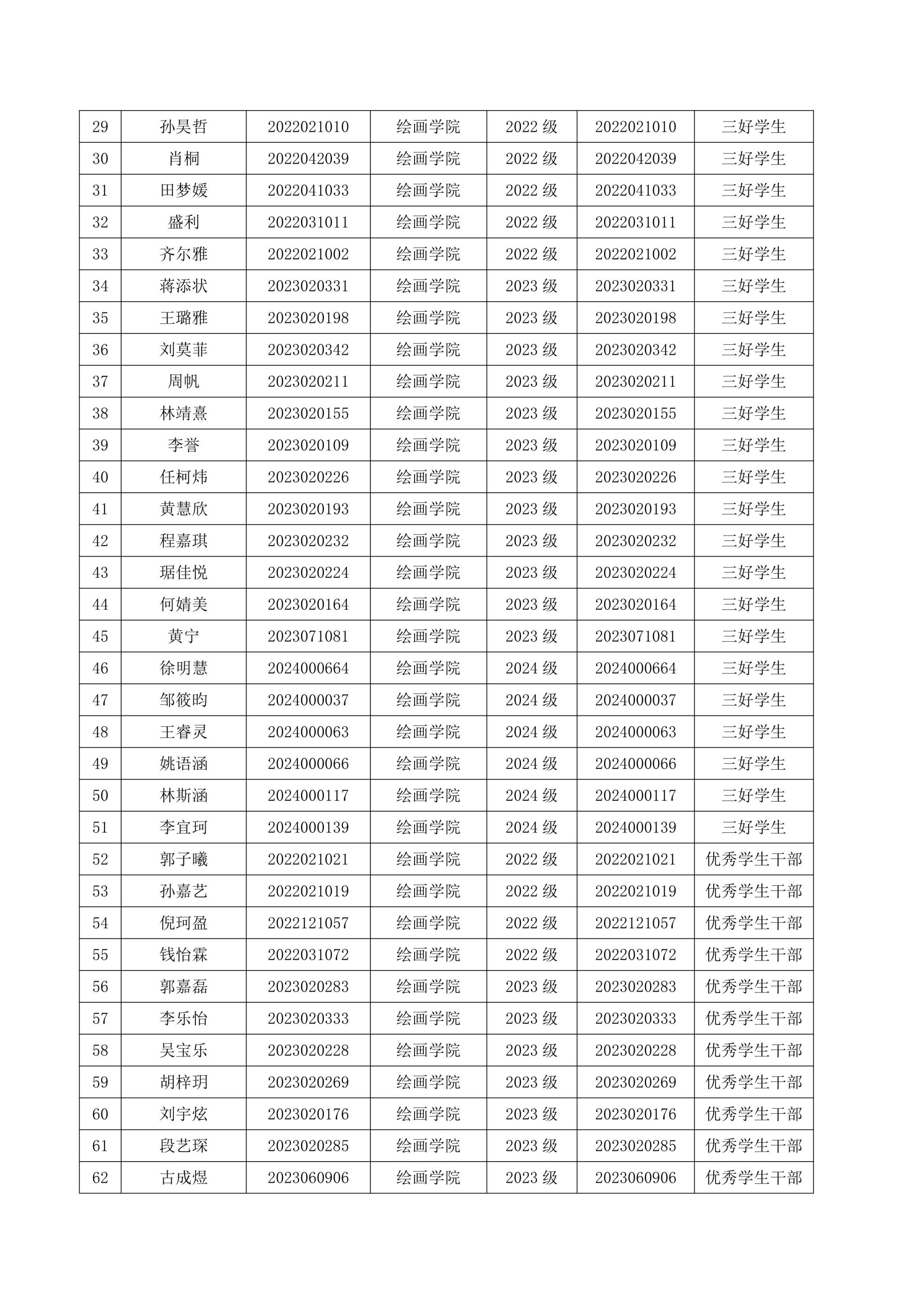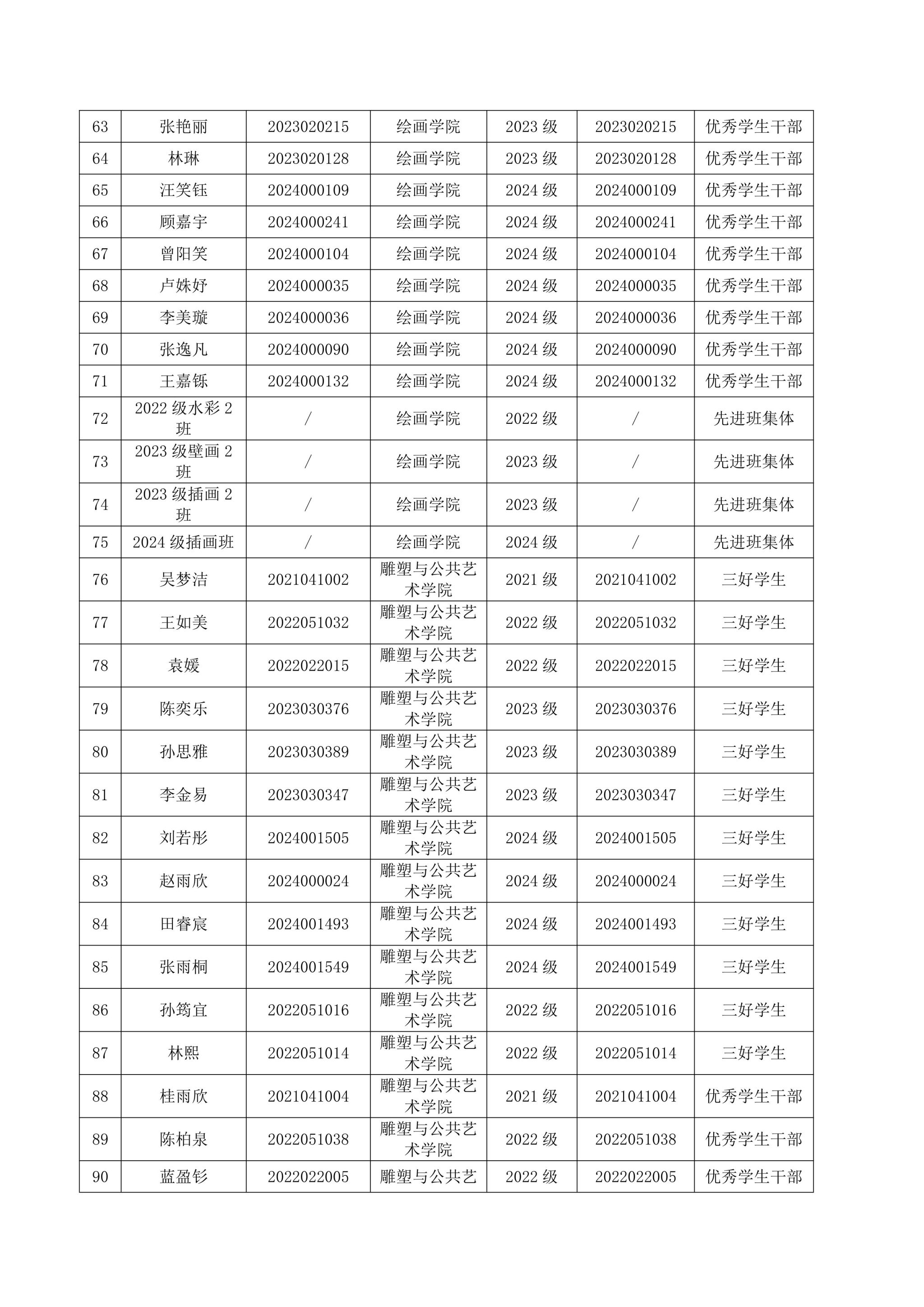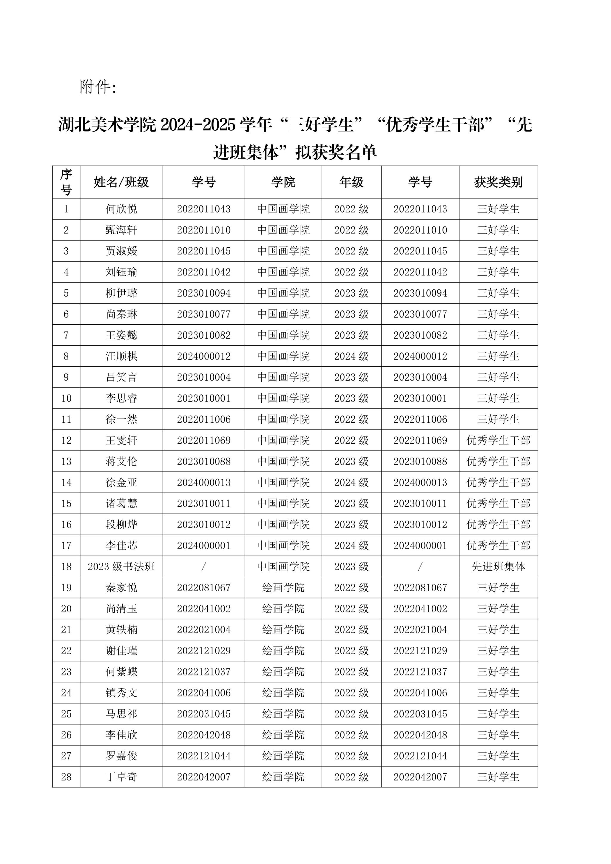 附件:湖北美术学院2024-2025学年“三好学生”“优秀学生干部”“先进班集体”拟获奖名单