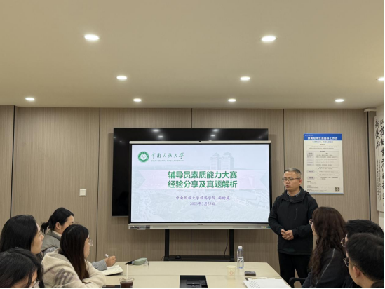培训紧扣辅导员素质能力大赛核心要求,以理论筑基、实战赋能、以赛促行为主线,系统拆解大赛备赛逻辑与育人工作方法。安树庭老师结合自身参赛与指导经验,从一个理论、四种斗争、四方维度展开深度讲授,聚焦大赛全流程实战要点,围绕基础知识测试、学情分析、案例研讨、谈心谈话四大核心环节逐一拆解。理论测试明确党的创新理论、思政重要文件、“四史”等考点,强调“省赛重基础、国赛重论述”备赛方向;案例研讨提炼“辨本质、抓主次、出实招、升启示”思路,结合典型真题示范提问与作答;谈心谈话传授“瞄准诉求、双向共情、划分阶段、注重长效”技巧,提供标准化模板,有效提升辅导员沟通引导与问题处置能力。